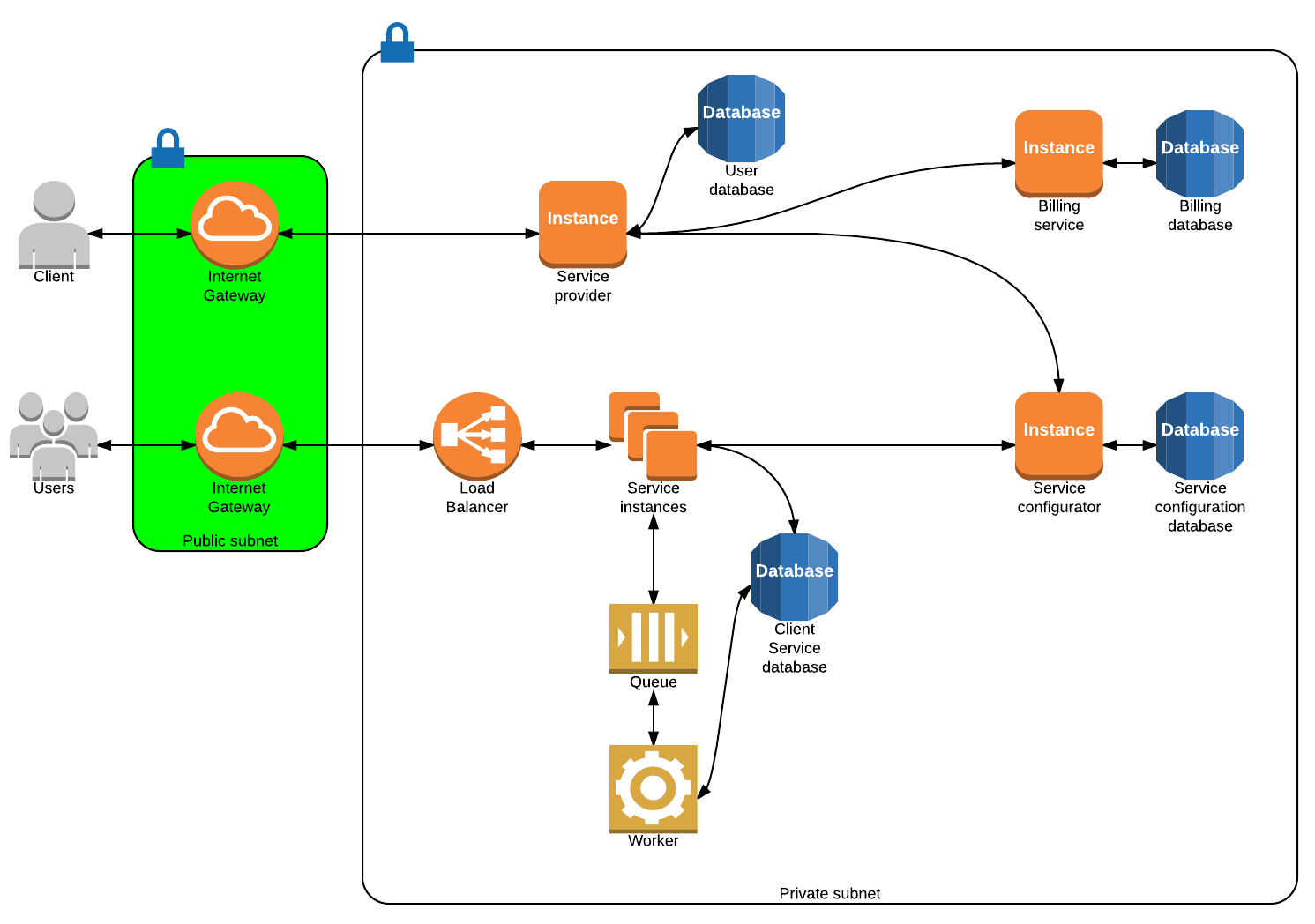 A client wants to create a new instance of a service we offer. Once he has decided on the modules he wants with his service, the following occurs: